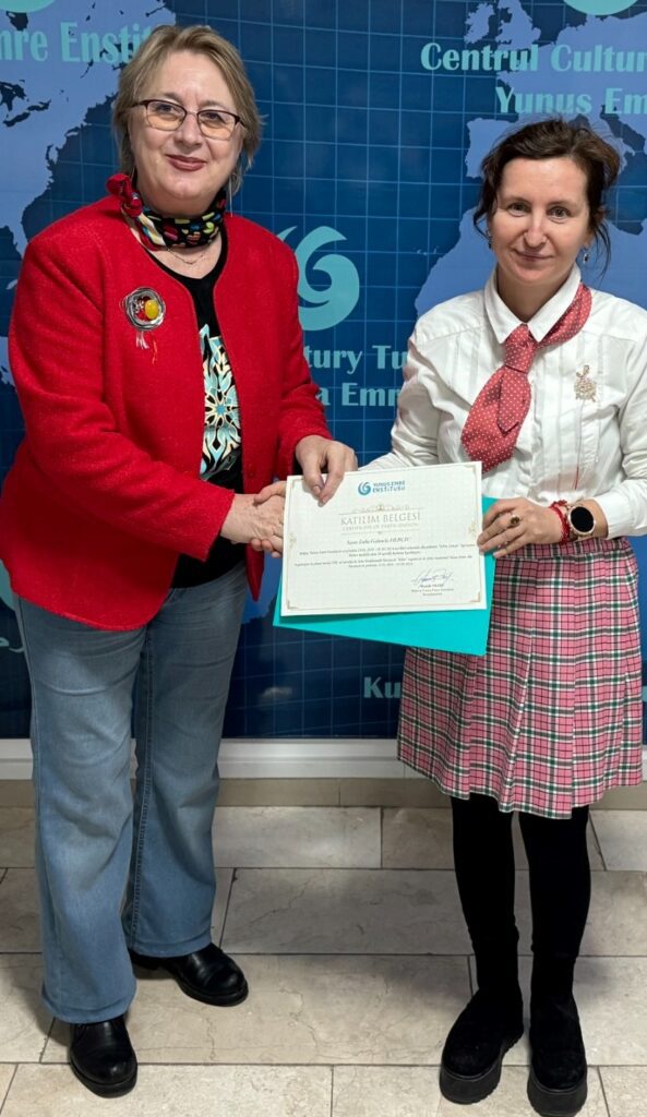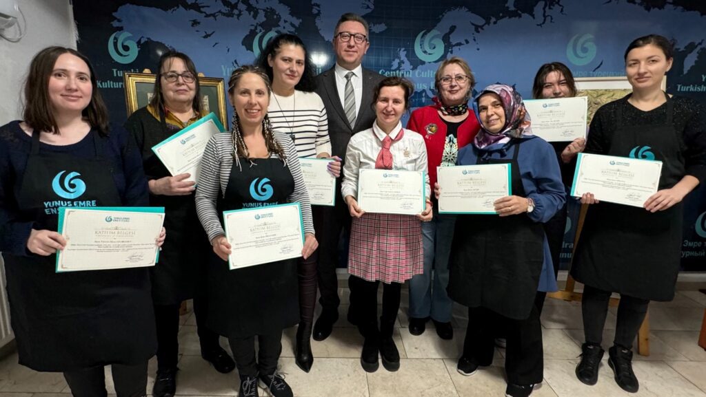2024 yılının birinci dönemini başarıyla tamamlayan katılımcılara sertifikaları düzenlenen törenlerle Yunus Emre Enstitüsü Romanya Müdürü Mustafa Yıldız ve ebru sanatı eğitmeni Rodica Parvan tarafından takdim edildi.