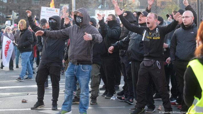 Deutsche Welle’nin haberine göre Almanya'da, hükümetin uygulamaya koyduğu koronavirüs tedbirlerine karşı düzenlenen protesto gösterilerine aşırı sağcı kişi ve gruplar da katılıyor.