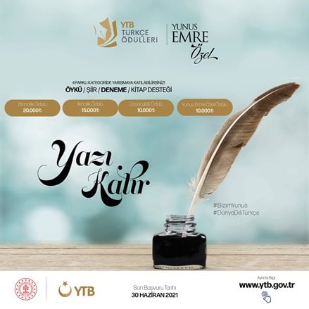 30 Haziran 2021 tarihinde sona erecek başvurular ve bilgi https://www.ytb.gov.tr/.../2021-ytb-turkce-odulleri... adresinden edinilebilir.