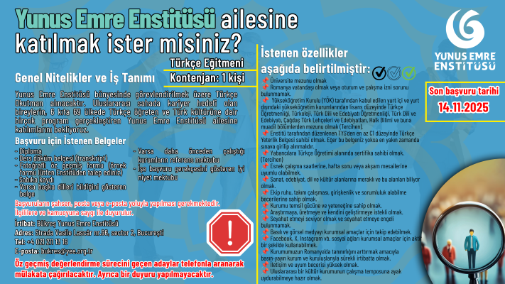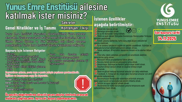 Romanya'da yürütmüş olduğu çalışmalarını daha da geliştirmek ve genişletmek üzere farklı pozisyonlarda farklı sayılarda personel alımı yapacak. İşte iş ilanlarının detayları: