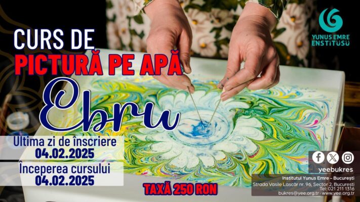 “Yunus Emre Enstitüsü olarak 2025 yılınızı kutlarız. Yeni yıla kadim Türk el sanatlarından Ebru Sanatı kursu ile merhaba diyoruz! 4 Şubat'ta başlayacak olan başlangıç seviyesi kursumuza aşağıdaki bağlantıdan kayıt yapıp Türk çayı ve kahvesi eşliğinde kursumuzda harika bir vakit geçirebilirsiniz. Ayrıca biraz ebru bilginiz ve deneyiminiz varsa üst kurlardan da başlayabilirsiniz.