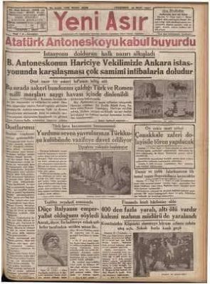 Bu ortamda Romanya Dışişleri Bakanı Victor Antonescu, eşi ve diplomat heyetiyle birlikte Mart 1937’de Türkiye’ye resmi bir ziyaret gerçekleştirdi. Antonescu, Romanya siyasetinde önemli bir figürdü ve ülkesinin dış politikasını yönlendiren en etkin devlet adamlarından biri olarak tanınıyordu. Ziyaretin amacı, Türk-Romen dostluğunu pekiştirmek, Balkanlar’da iş birliğini güçlendirmek ve iki ülke arasındaki dayanışmayı daha da artırmaktı.