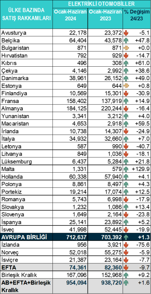 AVRUPA BİRLİĞİ 2024 - 2023 İLK ALTI AY OTOMOBİL PAZARI